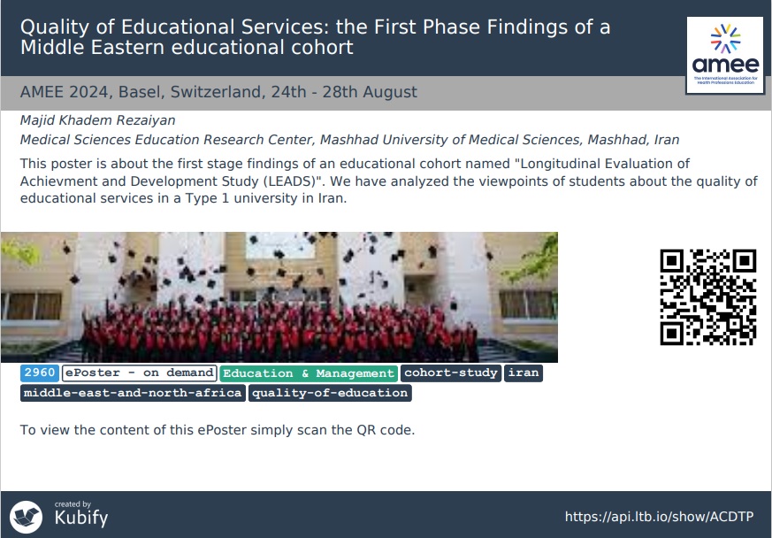 با خوشحالی اعلام می کنیم که در اولین سال ارسال چکیده های کوهورت آموزشی، دو چکیده از سوی تیم ما در کنگره 2024 AMEE پذیرفته شده است. این کنگره که در 24 تا 28 آگوست 2024 در شهر بازل، سوئیس برگزار شد، یکی از برجسته ترین رویدادهای بین المللی در حوزه آموش علوم پزشکی است. این چکیده ها گواهی بر کیفیت و اهمیت تحقیقات ما در حوزه آموزش است.